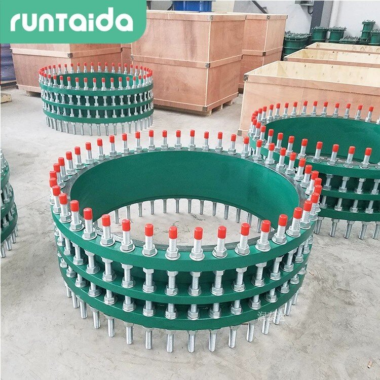 C2F雙法蘭傳力接頭的密封圈由NBR丁晴橡膠制成,其他材料:Q235碳鋼或不銹鋼304、316L等制作,材質(zhì)外部可涂裝高強(qiáng)度防腐漆料。正常運(yùn)行時(shí),將傳力螺桿上的螺母擰緊,整個(gè)接頭成為一個(gè)剛性體,可以將軸向力傳遞至整條管道,松套接頭本身不發(fā)生位移。從外觀能夠看出限位伸縮接頭本體上是有4片法蘭,螺栓不能夠超出產(chǎn)品本身。傳力接頭的本體上是3片法蘭,螺栓均長(zhǎng)于產(chǎn)品本體。該接頭由兩個(gè)鑄鐵法蘭、一個(gè)松套以及傳力螺栓等構(gòu)件組成。兩個(gè)鑄鐵法蘭具有較高的強(qiáng)度和耐腐蝕性,能夠適應(yīng)各種惡劣的工作環(huán)境。松套的設(shè)計(jì)使得兩個(gè)法蘭之間可以產(chǎn)生一定的位移,從而實(shí)現(xiàn)傳力功能。傳力螺栓則負(fù)責(zé)將兩個(gè)法蘭緊密連接在一起,確保接頭的穩(wěn)定性和密封性。該接頭具有較強(qiáng)的適應(yīng)性和靈活性,能夠適應(yīng)不同材質(zhì)、不同規(guī)格的管道連接需求。此外,它還具有優(yōu)異的密封性能和耐腐蝕性,能夠在高溫、高壓、腐蝕性介質(zhì)等惡劣環(huán)境下長(zhǎng)期穩(wěn)定運(yùn)行。最后,該接頭還具有維護(hù)簡(jiǎn)便的特點(diǎn),只需定期檢查和維護(hù)即可確保其正常運(yùn)行。